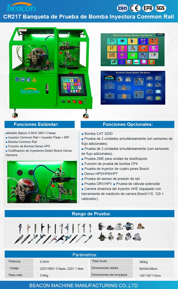 El banco de pruebas CR217 está diseñado para la comprobación profesional de inyectores y bombas de inyección diésel Common Rail.